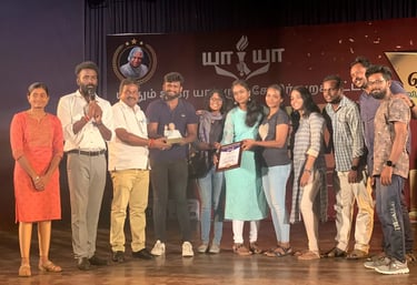 On 31st July 2022, we have received this recognition from Yaadhu Oore Yaavarum Kelir Trust in honoring our team efforts towards transformational change that our volunteers are turning into reality