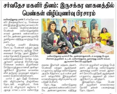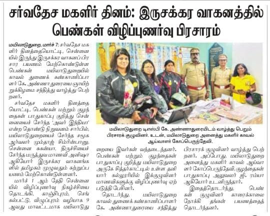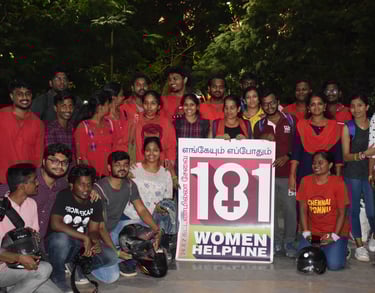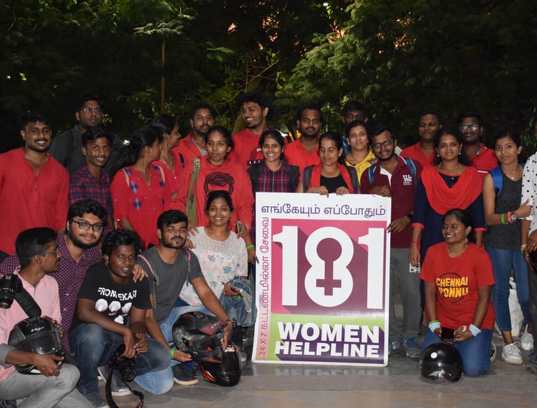 Observing the Women's Day in 2020, we spread awareness on women's helplines and welfare schemes across Chennai as a bike ride