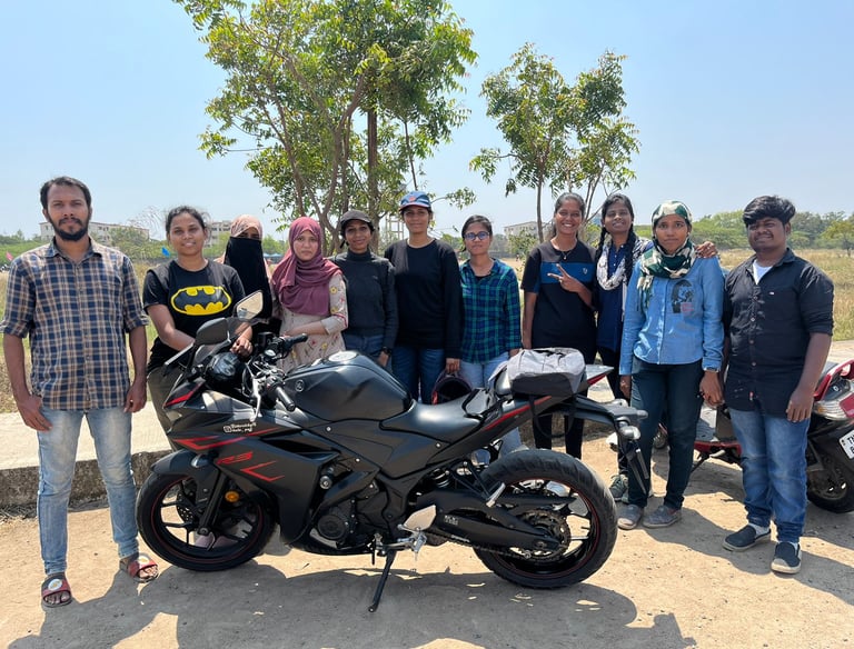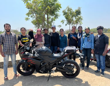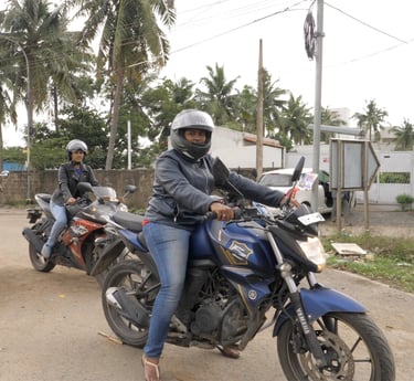 We conduct training sessions zonal wise to improve riding skills for women and help them guide with the process of acquiring license