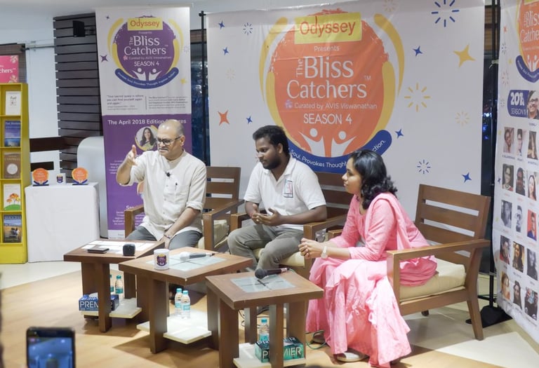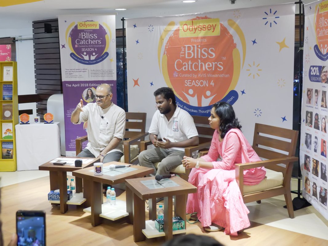 A popular Chennai-based live event series, curated by happiness coach AVIS Viswanathan, featuring conversations with individuals who've successfully followed their passions (their "bliss") instead of traditional paths. Sandhiyan Thilagavathy was featured in Season 4 Edition in April '18
