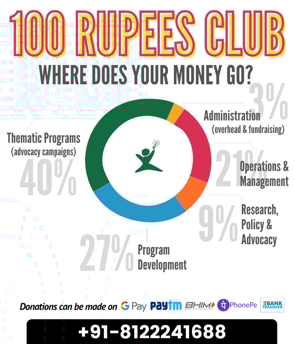 Through a monthly commitment of ₹100 or multiples of 100 for 12 months, an individual can choose to support any of our program