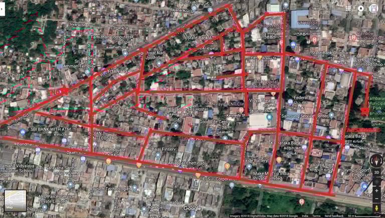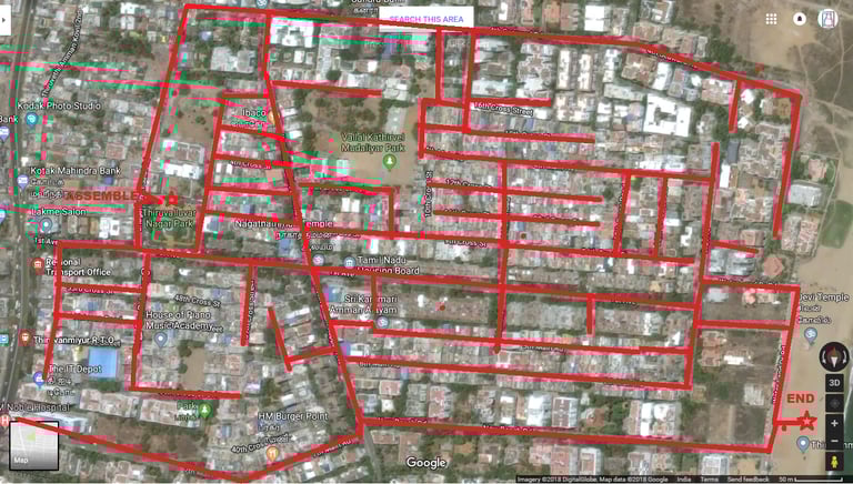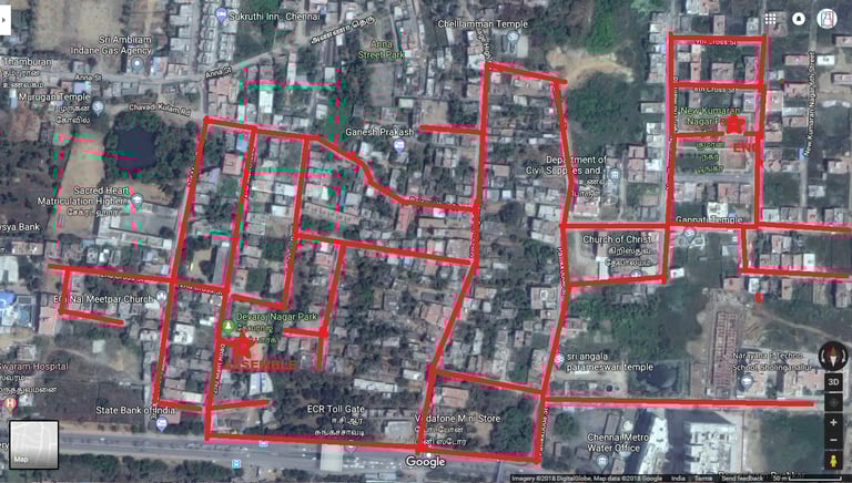 Volunteers started off their plan from Tambaram Corporation Park and collected data across mapped streets had a summarization discussion at Temple