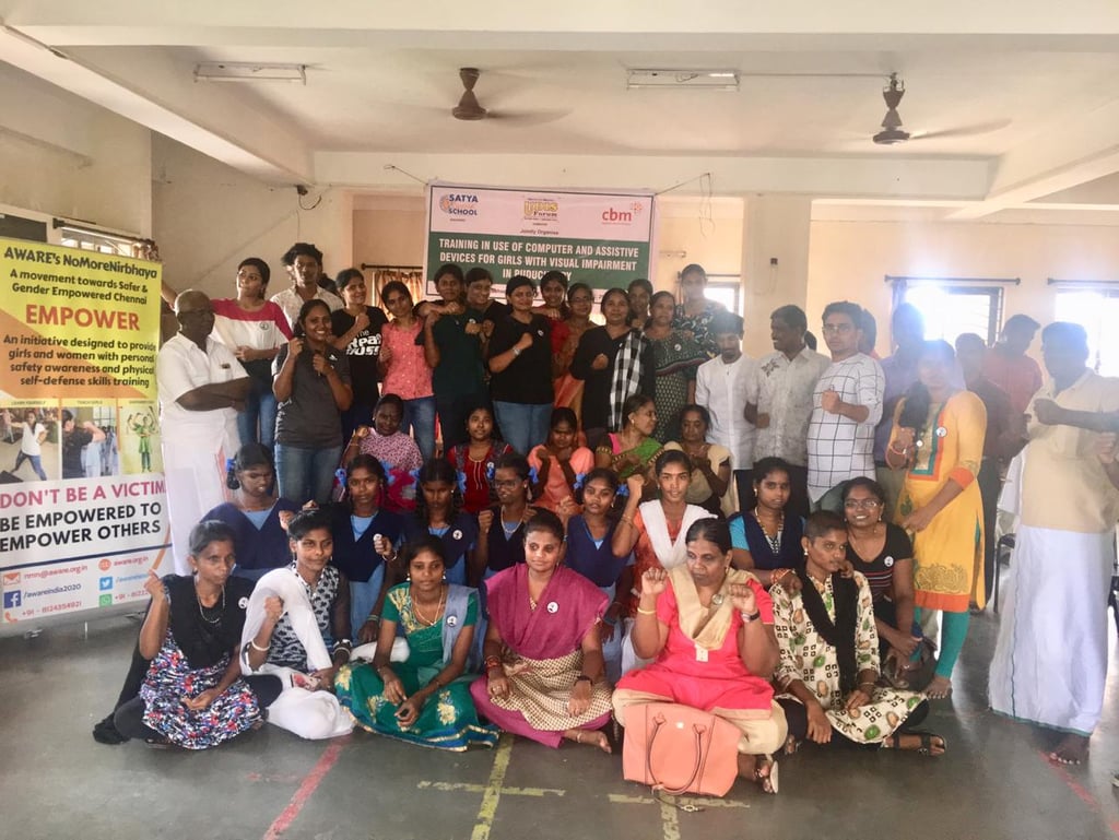 Set out for a ride to Satya Sai Special School in Pondicherry, equipping the visually impaired girls with basics of self-defense and menstrual hygiene